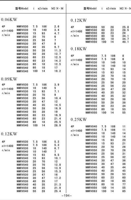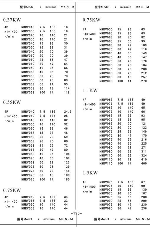 NMRV減速機按功率選型