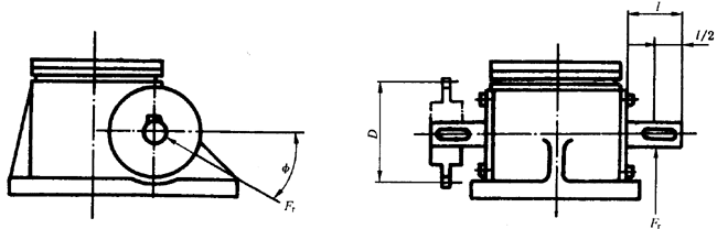 B1蝸桿軸伸上,由于安裝齒輪、鏈輪或帶輪所產生的徑向力Fr,其最大許用力與起升力和型號有差在1/2處所許用的最大徑向力和扭矩見圖B1和表B1。